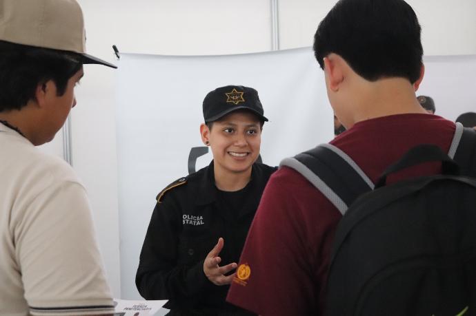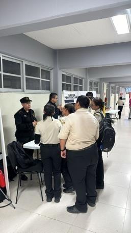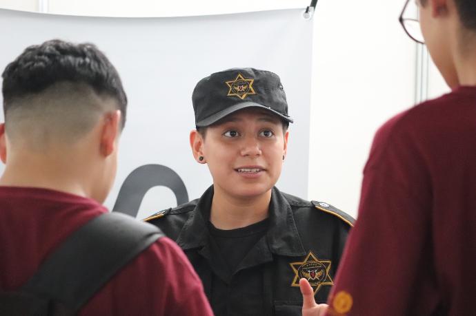 Los estudiantes tuvieron la oportunidad de interactuar con reclutadores, elementos de la institución e instructores de la Universidad de Ciencias de la Seguridad, quienes expusieron su experiencia dentro de la UCS en donde se formarán como policías estatales, quienes se mostraron interesados en nuestras vacantes, beneficios y por la oportunidad de crecer profesionalmente y desempeñarse en el ámbito de seguridad. Al final se les hizo un registro para aquellos que quieran pertenecer a la Secretaría de Seguridad y servir con vocación a Nuevo León.